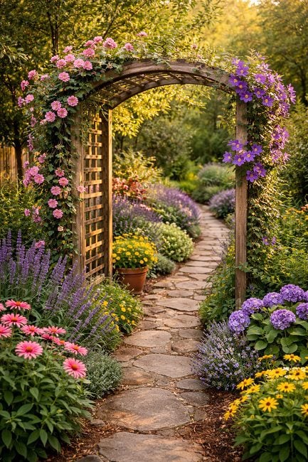 From my own experience, I’ve found that even a simple arch-shaped trellis can completely change the way a path feels. The addition of a trellis shifts the focus from the ground to the air, making the path feel more like an experience, not just a functional route.