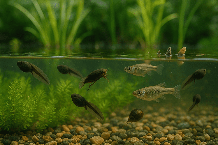 - Native aquatic plants like hornwort and watermilfoil for egg laying.
