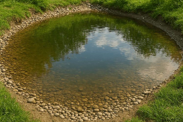 The first real improvement came when I added a shallow pond, about 30 cm deep at the edges and 60 cm at the center, with gently sloped sides. I made sure to include: